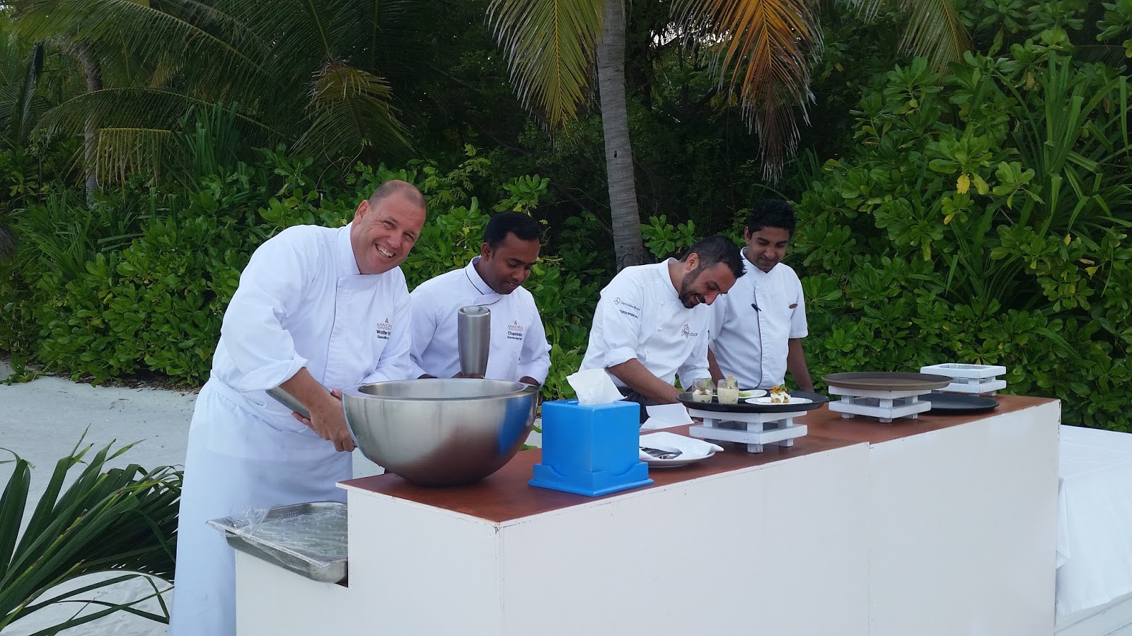 As the hotel is pretty full, it is not always easy for the chefs to make time and come over to Naladhu, the private island, and cook with the master chef. That is why most of the chefs actually took a day off so they have time and invest it to learn something new